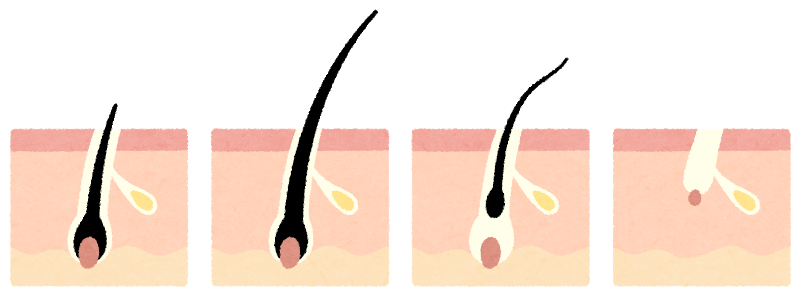 でも、心身に大きな負担がかかって毛周期が乱れたとき、バラバラなはずのサイクルが一斉にストップしてしまい、そのまま一斉に「抜け毛」の段階に移行してしまうことが。